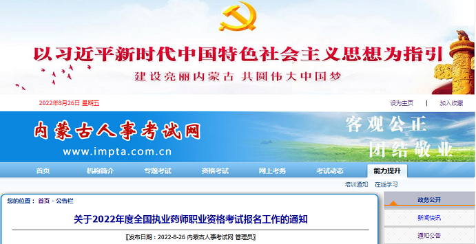 2022年8月26日消息,内蒙古人事考试网发布了《关于2022年度全国执业药师职业资格考试报名工作的通知》,通知中指出了2022年内蒙古执业药师考试报名时间为8月29日至9月11日,关于报名的相关事宜整理如下。