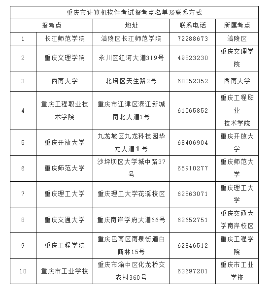 (九)重庆市计算机软件水平考试实施办公室地址:重庆市渝北区云杉南路12号7007办公室。