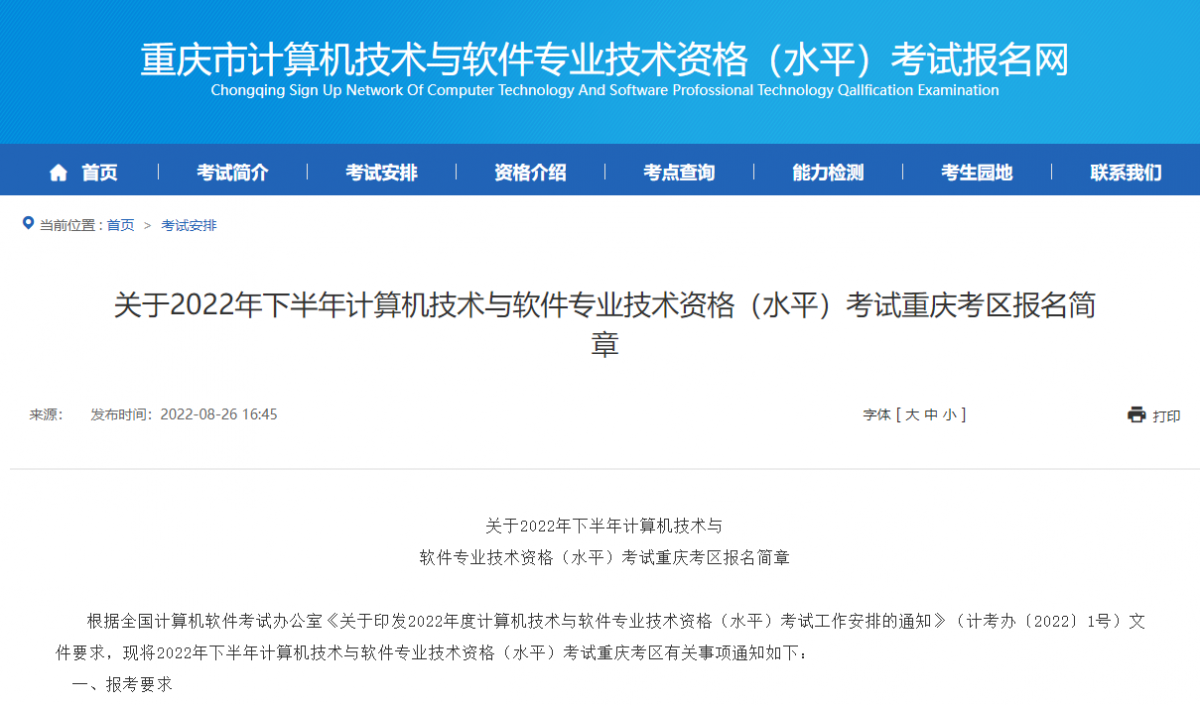 若想了解《关于2022年下半年计算机技术与软件专业技术资格(水平)考试重庆考区报名简章》的有关内容,可进入重庆软考办查阅。