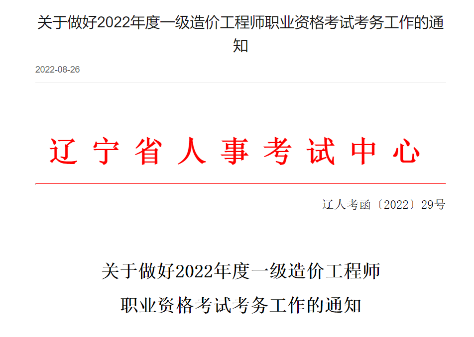 近日,辽宁省人事考试中心发布“关于做好2022年度一级造价工程师职业资格考试考务工作的通知”,确定2022年辽宁省一级造价师考试报名时间为:8月31日9:00-9月7日24:00,请考生合理安排时间,在规定时间内填写报考信息并完成缴费,下面为大家展示通知中部分相关信息。