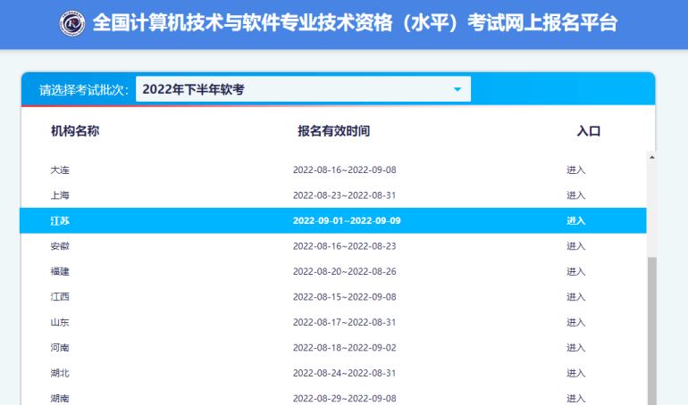 近日,江苏省工业信息中心网站发布了《2022年下半年全国计算机技术与软件专业技术资格(水平)考试江苏考区报名通知》,通知中确定了江苏2022下半年软考时间及报名入口等重要信息,报名入口为:中国计算机技术职业资格网,将于9月1日开通。