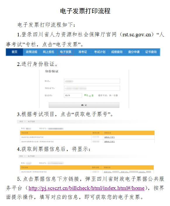 可在四川省人力资源和社会保障厅官网(rst.sc.gov.cn)“人事考试”专栏打印电子发票(流程见附件3),不再提供纸质发票。