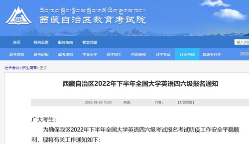 西藏自治区2022年下半年全国大学英语四六级报名通知