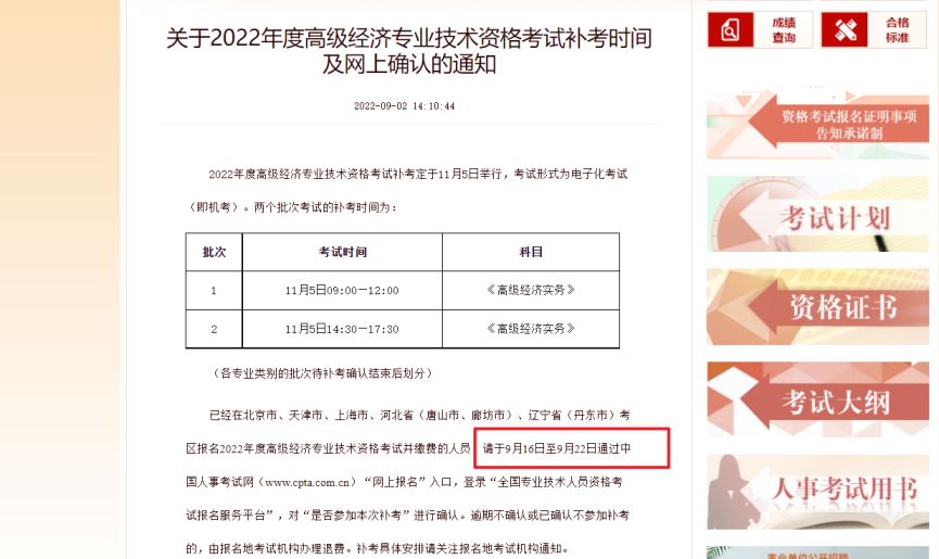 关于2022年度高级经济专业技术资格考试补考时间及网上确认的通知