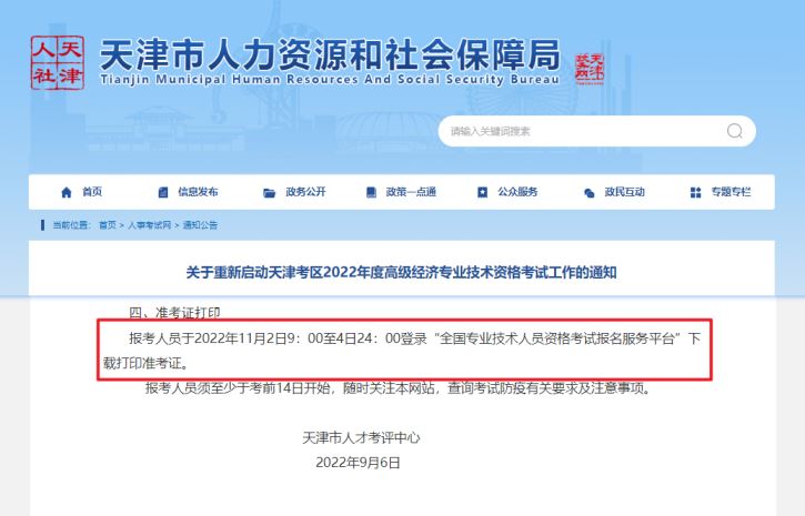按照国家有关安排,天津考区2022年度高级经济专业技术资格考试补考于11月5日举行。现将有关事项通知如下: