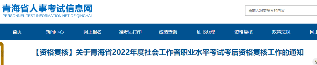 青海省人事考试信息网发布关于青海省2022年度社会工作者职业水平考试考后资格复核工作的通知,具体安排如下: