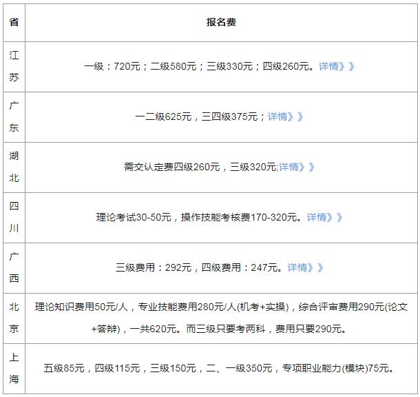 下面汇总了最近报名考试的省份:江苏、广东、湖北、四川、广西等省份的报名费供大家参考