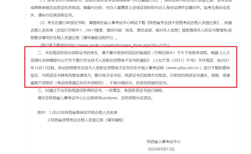 2022年陕西高级经济师资格证书领取方式:证书邮寄、窗口领取