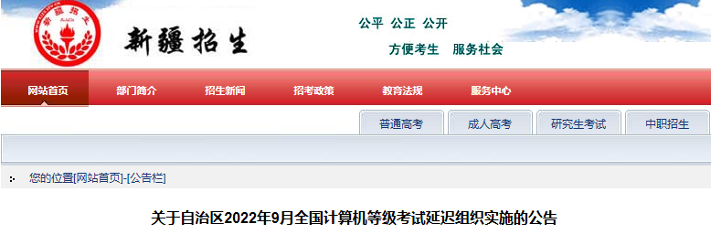 新疆自治区教育考试院发布《关于自治区2022年9月全国计算机等级考试延迟组织实施的公告》
