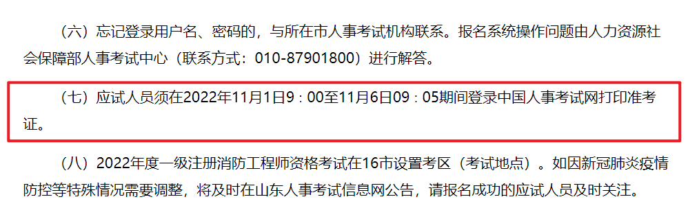 (七)应试人员须在2022年11月1日9∶00至11月6日09∶05期间登录中国人事考试网打印准考证。