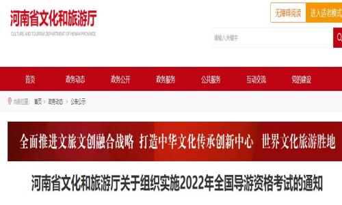 近期,河南省文化和旅游厅发布《河南省文化和旅游厅关于组织实施2022年全国导游资格考试的通知》,通知明确了2022年河南省导游资格证考试时间为11月26日,考生需在规定时间内进行考试。以下是通知相关内容: