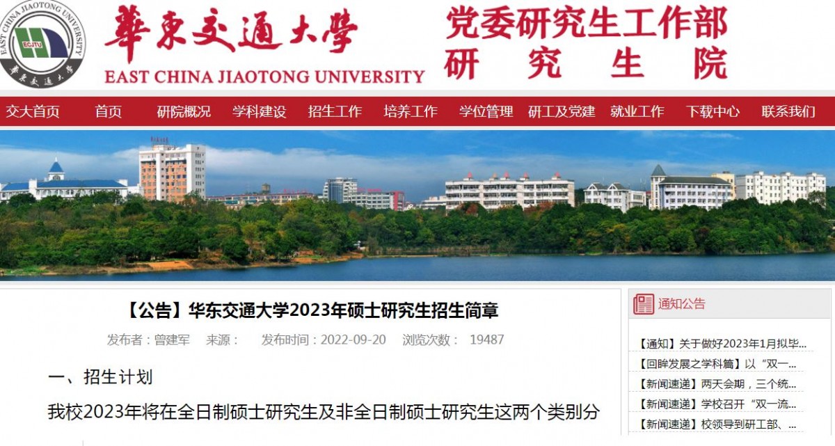 华东交通大学《【公告】华东交通大学2023年硕士研究生招生简章》