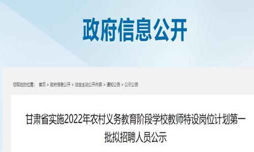 9月28日,甘肃省教育厅发布《甘肃省实施2022年农村义务教育阶段学校教师特设岗位计划第一批拟招聘人员公示》,明确了拟聘用考生的名单,详情如下: