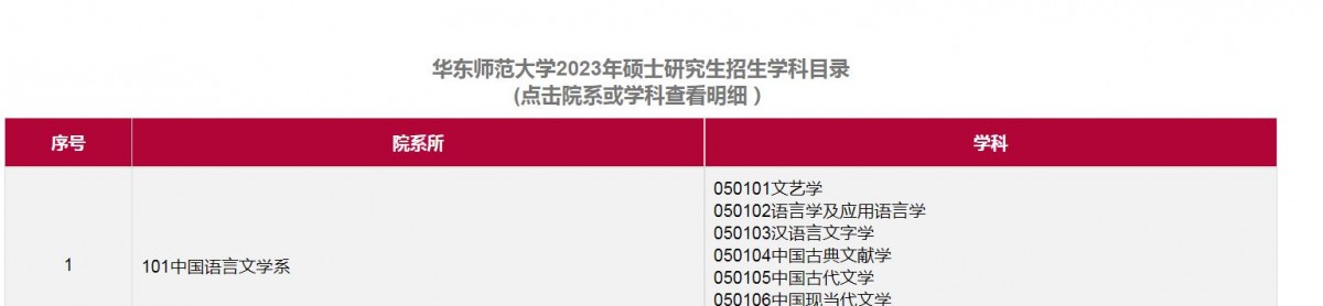 华东师范大学发布的《华东师范大学2023年硕士研究生招生学科目录》