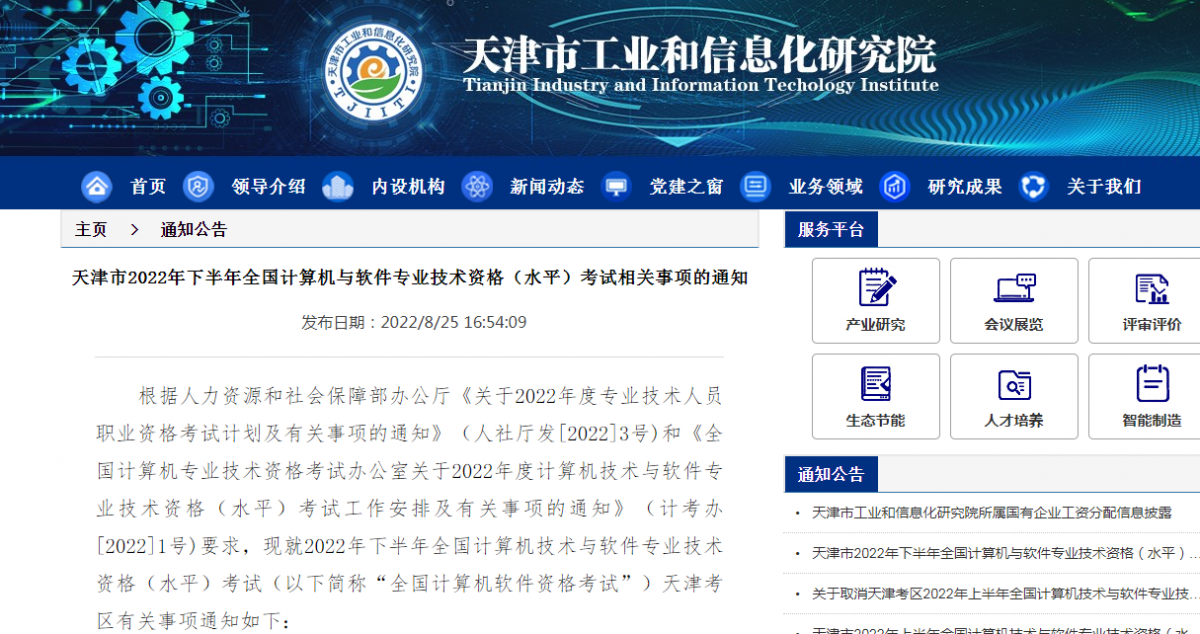 天津市工业和信息化研究院发布了《天津市2022年下半年全国计算机与软件专业技术资格(水平)考试相关事项的通知》,从中得知,2022下半年天津软考中级职称准考证打印入口于10月31日9:00后开通,考生登录报名网站打印准考证,凭准考证、身份证在指定的时间、地点参加考试。