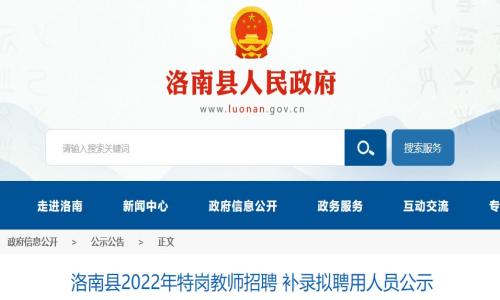 9月30日,陕西省洛南县人民政府发布《洛南县2022年特岗教师招聘补录拟聘用人员公示》,公示截止时间为10月6日,公示期间如有异议,请及时向洛南县科技和教育体育局反映。详情如下: