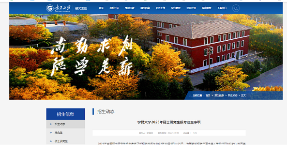 宁夏大学研究生院发布了《宁夏大学2023年硕士研究生报考注意事项》