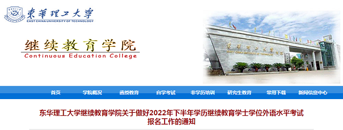 东华理工大学继续教育学院发布《东华理工大学继续教育学院关于做好2022年下半年学历继续教育学士学位外语水平考试报名工作的通知》