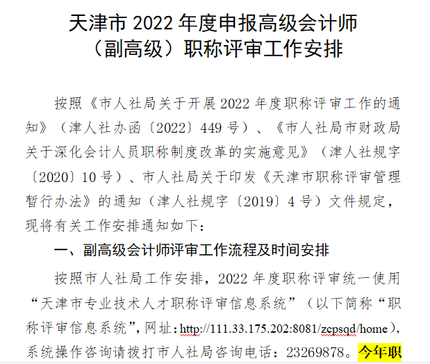 按照市人社局工作安排,2022年度职称评审统一使用“天津市专业技术人才职称评审信息系统”(以下简称“职称评审信息系统”,网址:http://111.33.175.202:8081/zcpsqd/home),系统操作咨询请拨打市人社局咨询电话:23269878。今年职称申报评审实行全程无纸化,申报人员不再提交纸质材料。