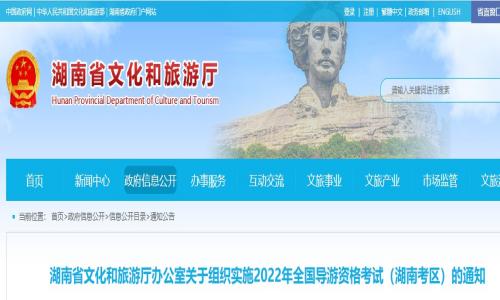 近期,湖南省文化和旅游厅发布《湖南省文化和旅游厅办公室关于组织实施2022年全国导游资格考试(湖南考区)的通知》,通知明确2022年湖南省导游证考试时间为11月26日,考生需合理安排复习时间,按时参加考试。详情如下: