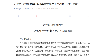 对外经贸大学研究生招生网发布了《对外经济贸易大学2023年审计硕士(MAud)招生简章》