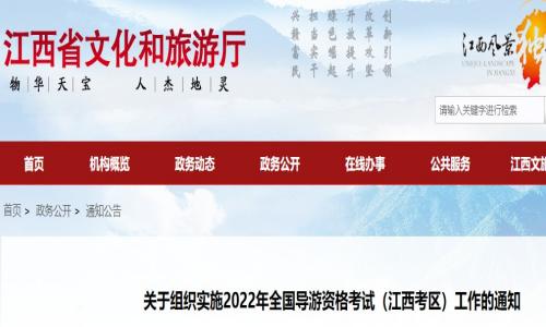 近期,江西省文化和旅游厅发布《关于组织实施2022年全国导游资格考试(江西考区)工作的通知》,通知明确参加2022年江西省导游证考试的考生从11月18日开始可以打印准考证,提醒考生按时打印,以便顺利参加考试。详情如下: