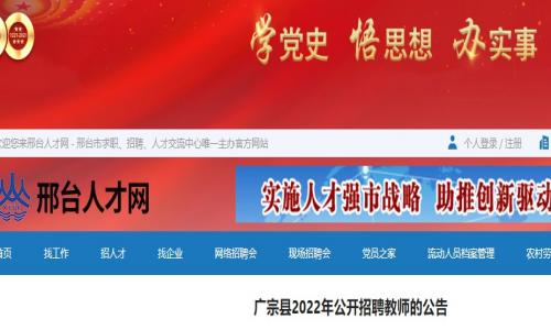 近日,邢台人才网发布《广宗县2022年公开招聘教师的公告》,公告明确了考生报名时间为10月15日,考生需在规定时间内登录报名官网进行报名,详情如下: