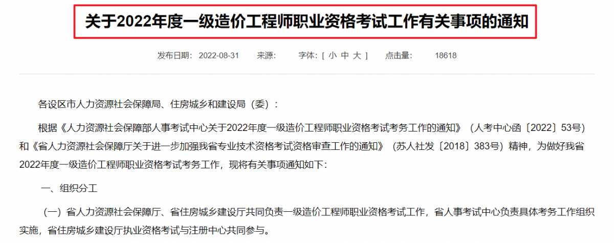 江苏省发布的2022年一级造价师考试安排