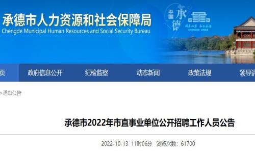 10月13日,承德市人力资源和社会保障局发布《承德市2022年市直事业单位公开招聘工作人员公告》,其中招聘部分教师岗位,提醒考生于10月18日登录承德人事培训考试网进行报名,详情如下: