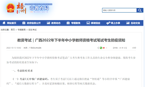 梧州市教育局《广西2022年下半年中小学教师资格考试笔试考生防疫须知》