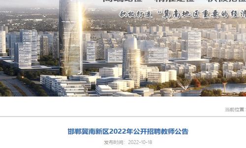 10月18日,邯郸冀南新区管理委员会官网发布《邯郸冀南新区2022年公开招聘教师公告》,明确报名时间为10月24日,考生需登录规定网站进行报名,详情如下: