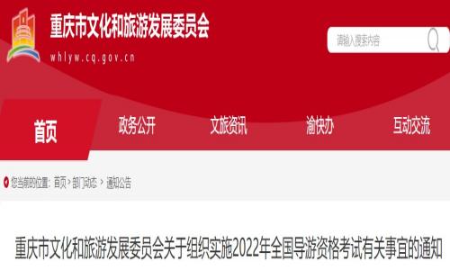 近期,重庆市文化和旅游发展委员会官网发布《文化和旅游部市场管理司关于组织实施2022年全国导游资格考试的通知》,通知明确2022年重庆导游证考试准考证打印时间为11月18日,考生需按时打印准考证,以便顺利参加考试,详情如下: