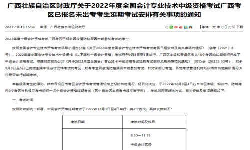 (二)2022年11月15日前,广西壮族自治区财政厅网站(http://czt.gxzf.gov.cn/)将公布中级会计资格延期考试广西考区准考证网上打印起止时间。