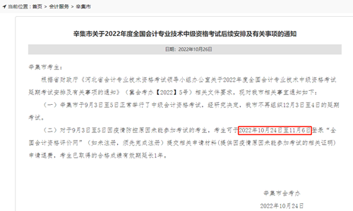 近日,本站编辑根据河北省财政厅发布的“辛集市关于2022年度全国会计专业技术中级资格考试后续安排及有关事项的通知”获悉辛集不组织延期考试,退费申请时间为10月24日至2022年11月6日。