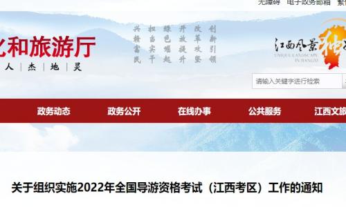 近期,江西文旅厅发布《关于组织实施2022年全国导游资格考试(江西考区)工作的通知》,明确考试时间为11月26日,同时提醒考生注意防疫须知。