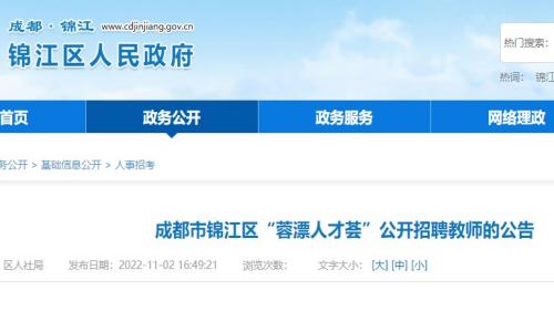 近日,锦江区人民政府发布《成都市锦江区“蓉漂人才荟”公开招聘教师的公告》,明确报名时间为2022年11月12日(上午9:30-12:00,下午13:00-15:00),提醒考生按时报名。