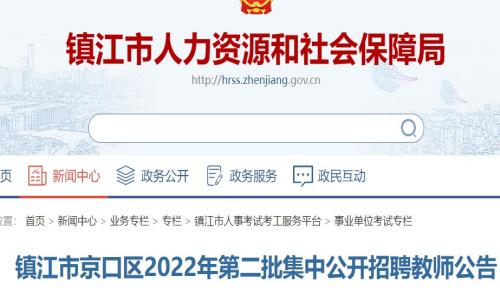 近日,镇江市人力资源和社会保障局发布《镇江市京口区2022年第二批集中公开招聘教师公告》,明确报名时间为2022年11月21日9:00-11月23日16 :00,提醒考生按时报名。