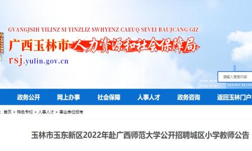近日,广西玉林市人力资源和社会保障局网站发布《玉林市玉东新区2022年赴广西师范大学公开招聘城区小学教师公告》,明确报名时间为2022年11月19日-11月20日,提醒考生按时报名。