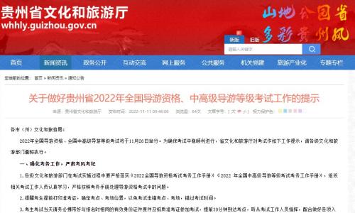 近日贵州省文化和旅游局发布《关于做好贵州省2022年全国导游资格、中高级导游等级考试工作的提示》,明确贵州导游资格考试时间为11月26日,同时做出了相关具体的防疫规定。