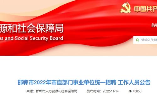 近日,邯郸市人力资源和社会保障局发布《邯郸市2022年市直部门事业单位统一招聘工作人员公告》,明确报名时间为 2022年11月22日 09:00 - 2022年11月28日 17:30,提醒考生按时报名。