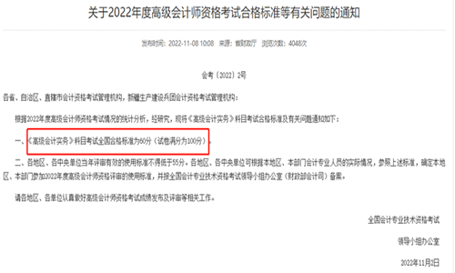 近日,本站编辑根据安徽省财政会计网发布的“关于2022年度高级会计师资格考试合格标准等有关问题的通知”获悉安徽2022年高级会计师合格标准为60分。