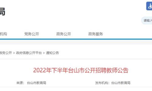 近日,台山市人民政府发布《2022年下半年台山市公开招聘教师公告》,明确报名时间为2022年12月7日9:00至2022年12月9日16:00,提醒考生按时报名。