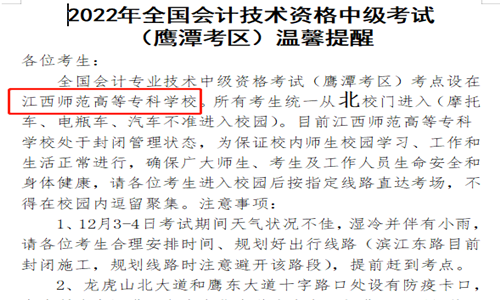 近日,本站编辑根据鹰潭市财政局发布的“2022年全国会计技术资格中级考试(鹰潭考区)温馨提醒”考试正常举行,考点设在江西师范高等专科学校。