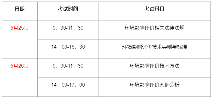 2024年环评师考试科目时间安排