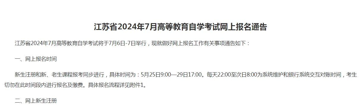 江苏省2024年7月高等教育自学考试将于7月6日-7日举行,现就做好网上报名工作有关事项通告如下: