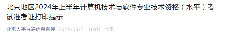 北京地区2024年上半年计算机技术与软件专业技术资格(水平)考试准考证打印提示