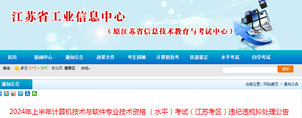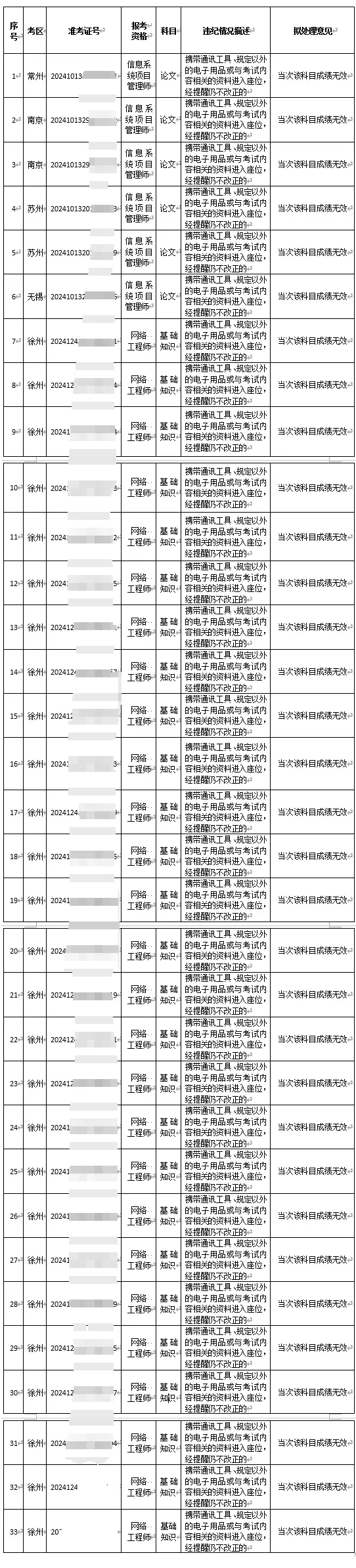 2024年上半年计算机技术与软件专业技术资格 (水平)考试(江苏考区)违纪违规拟处理公告