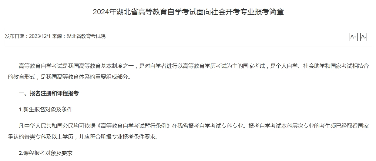 湖北教育考试院近日发布了《2024年湖北省高等教育自学考试面向社会开考专业报考简章》。根据公告,湖北省2024年下半年自学考试的网上报名时间为8月22日至29日。考生需在此期间通过指定的官方网站或其他官方渠道进行报名。这一通知对所有计划参加自学考试的考生来说至关重要,标志着他们备考的正式开始。