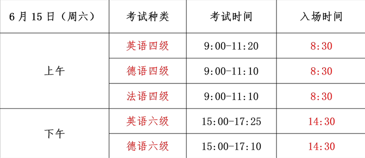 根据教育部教育考试院工作部署,2024年上半年全国大学英语四、六级考试笔试(简称CET)将于6月15日举行。