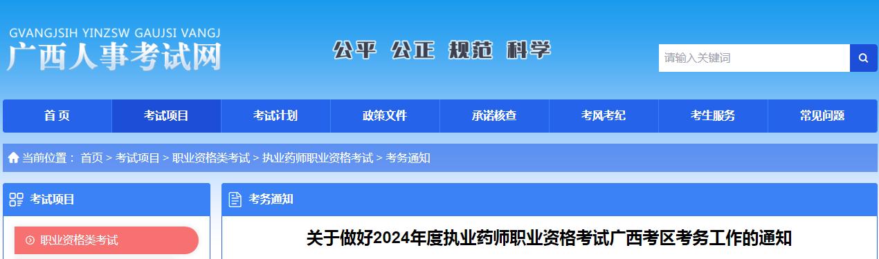 根据《人力资源和社会保障部人事考试中心关于2024年度执业药师职业资格考试考务工作的通知》(人考中心函〔2024〕29号)精神,为做好2024年度执业药师职业资格考试广西考区考务工作,现将有关事项通知如下: